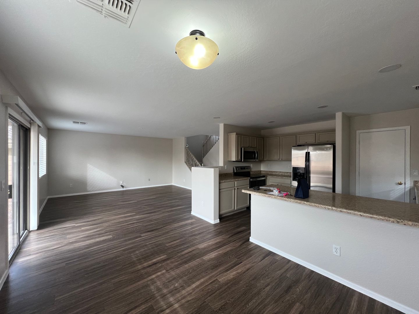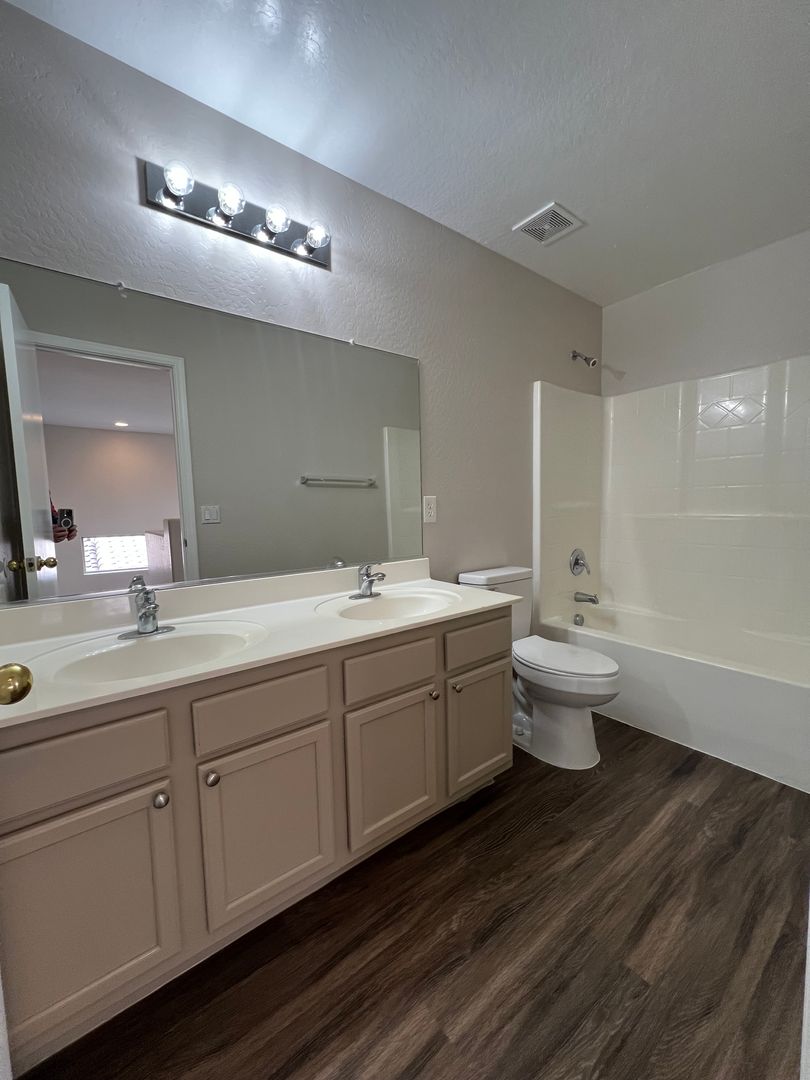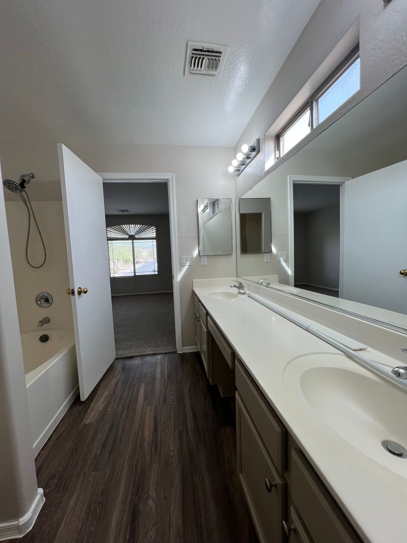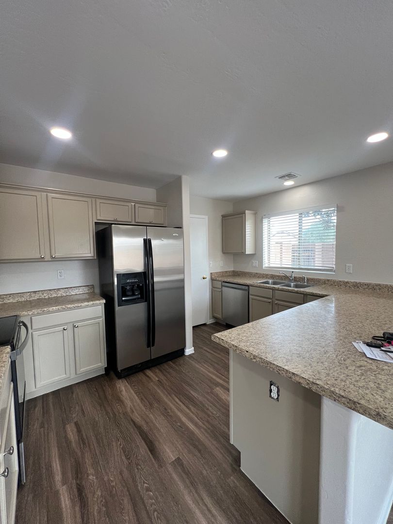 This lovely Buckeye home is freshly painted in neutral tones and has brand new flooring throughout. You'll find a bedroom and full bathroom downstairs and a HUGE loft along with the other 3 bedrooms (including the primary) are upstairs. The laundry room is also upstairs. Great layout, kitchen with breakfast bar seating and room for a dining table, the kitchen also has a walk in pantry. Large backyard with gravel for low maintenance. This home adjacent to the community park and the community is full of walking paths, playgrounds and green space.