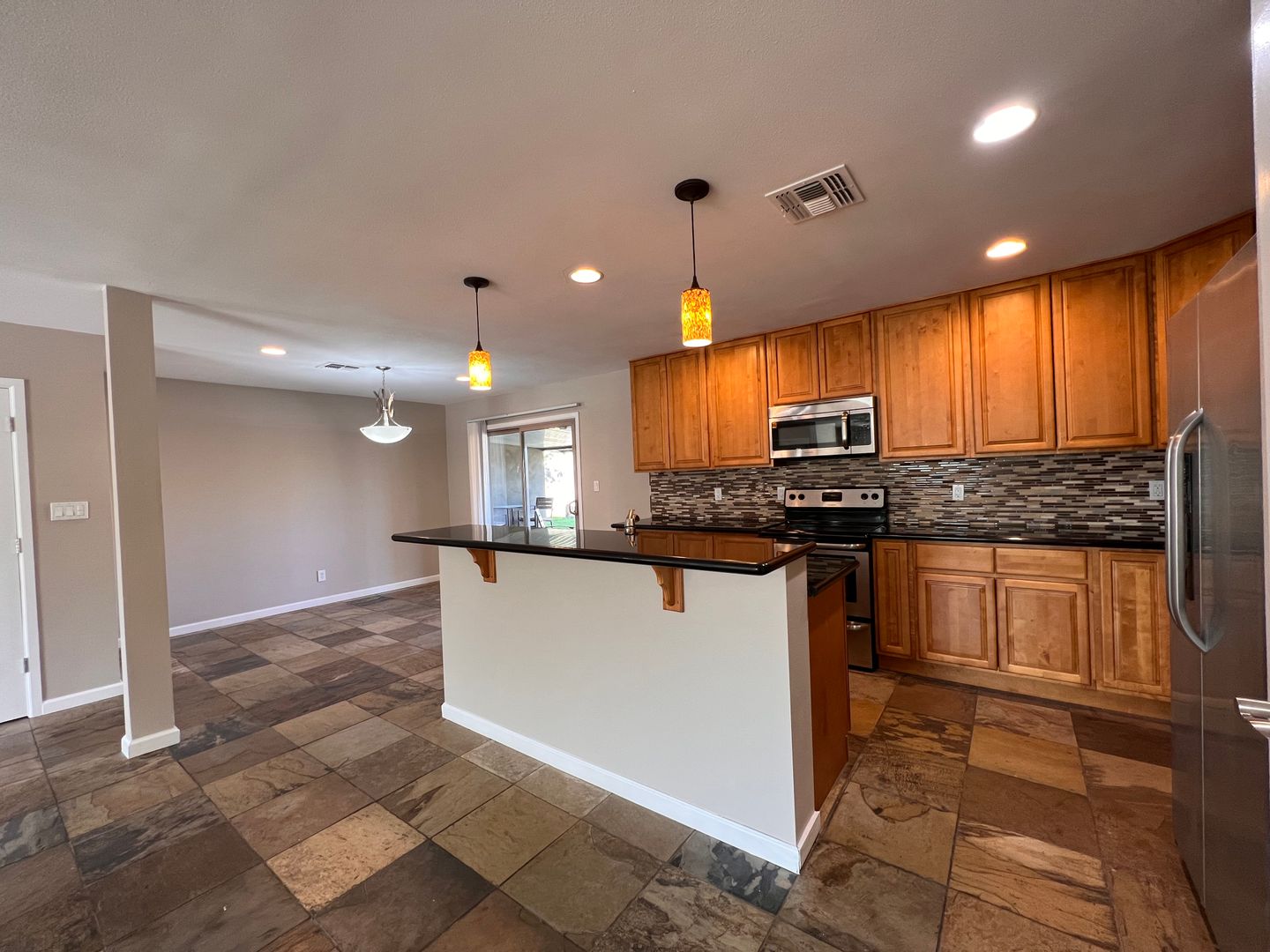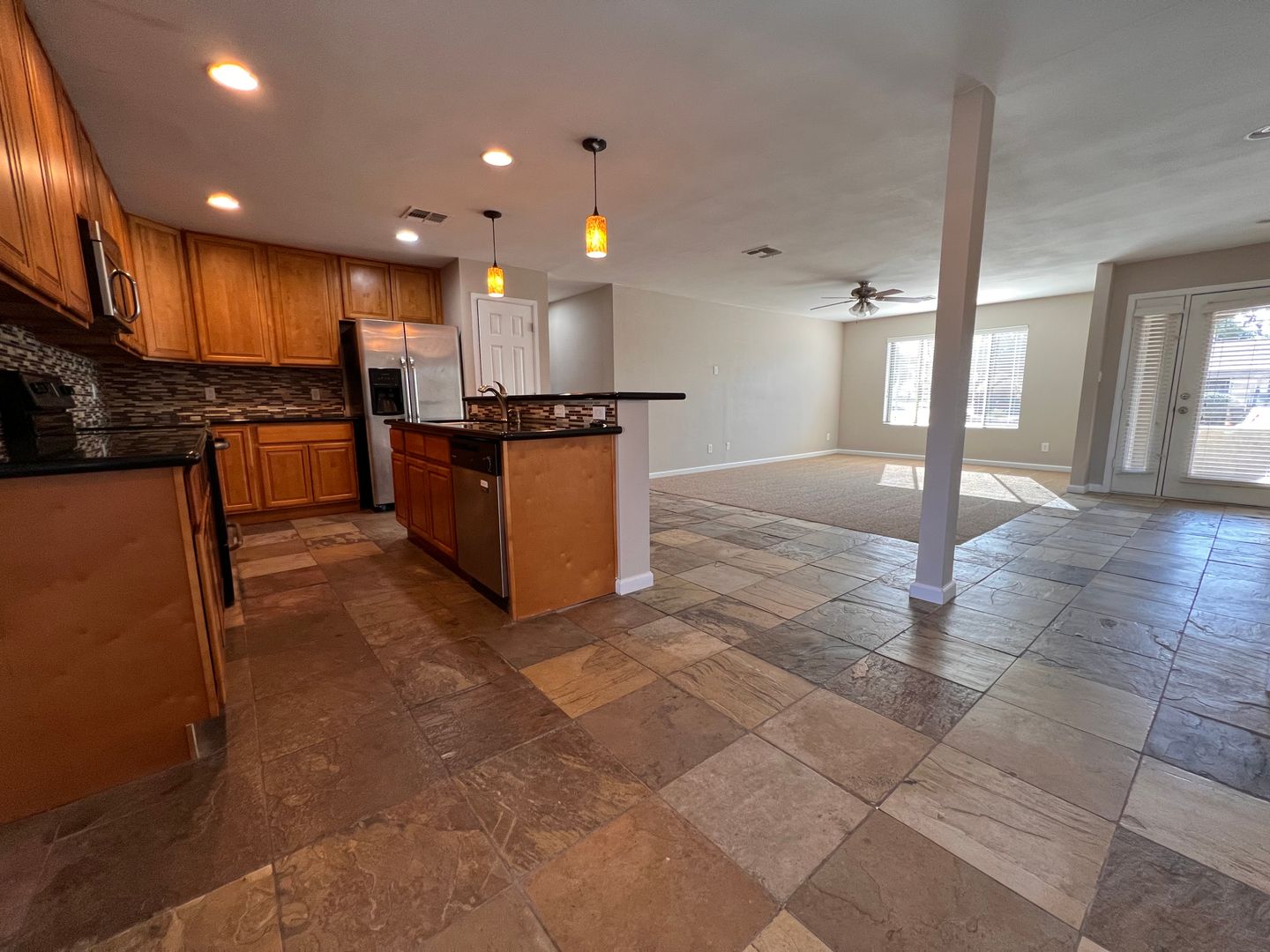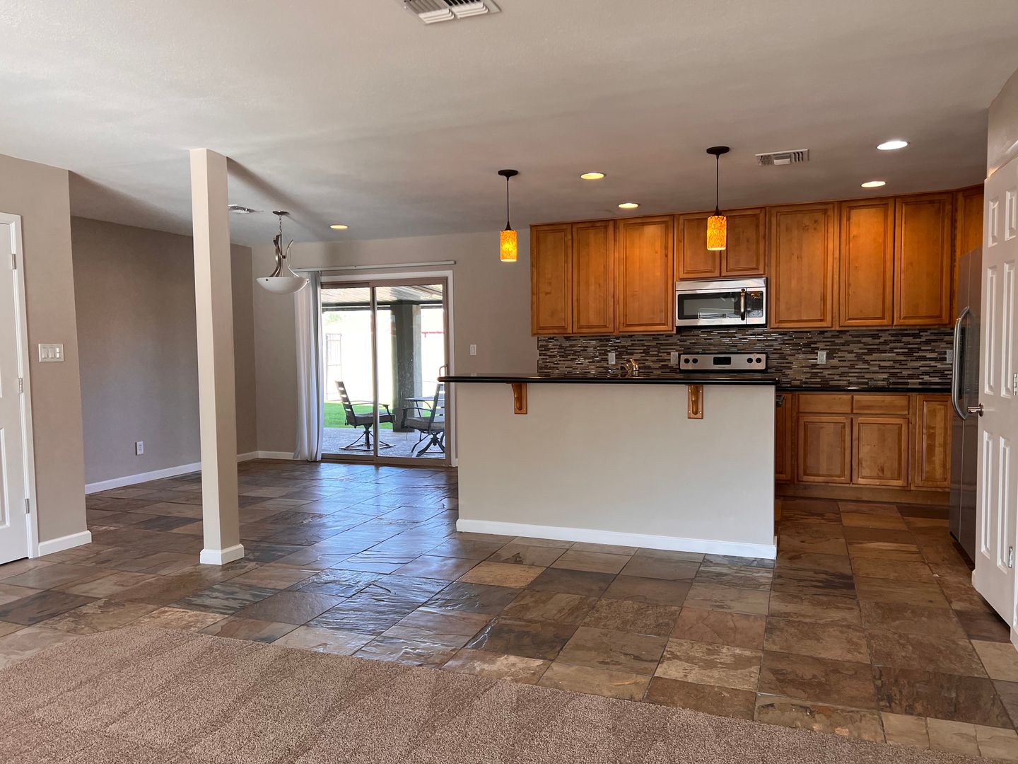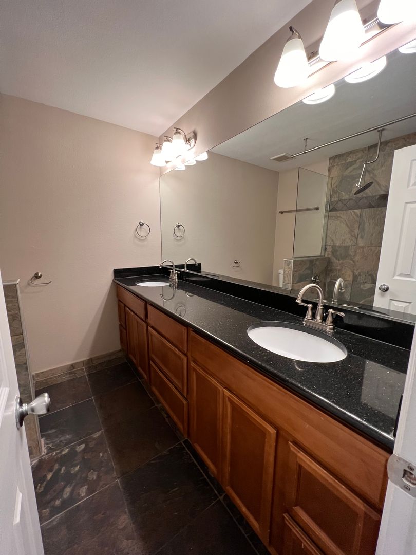 Ready for immediate move in! Welcome to this fabulous Tempe location with a sparkling fenced pool. This spacious house offers 5 bedrooms and 2 bathrooms. The interior has neutral colors, natural slate tile floor, granite counters. Enter the front doors into the large great-room with views of the park from the front window and views of the pool, grassy area and patio out the arcadia patio doors. The kitchen boasts a breakfast bar island, plus dining area in kitchen, stainless appliances, granite counters and mosaic tile backsplash, tons of cabinets plus a pantry. 5th bedroom is split and could be used as an office, den or bedroom-it has an exit door to the backyard. Indoor laundry room, 2 car garage with direct entry, corner lot and located across the street from Selleh Park. You can enjoy the beauty of nature, duck-pond and playground area just steps away from your front door. The rent includes biweekly landscaping and pool service. Must take possession in February or March.