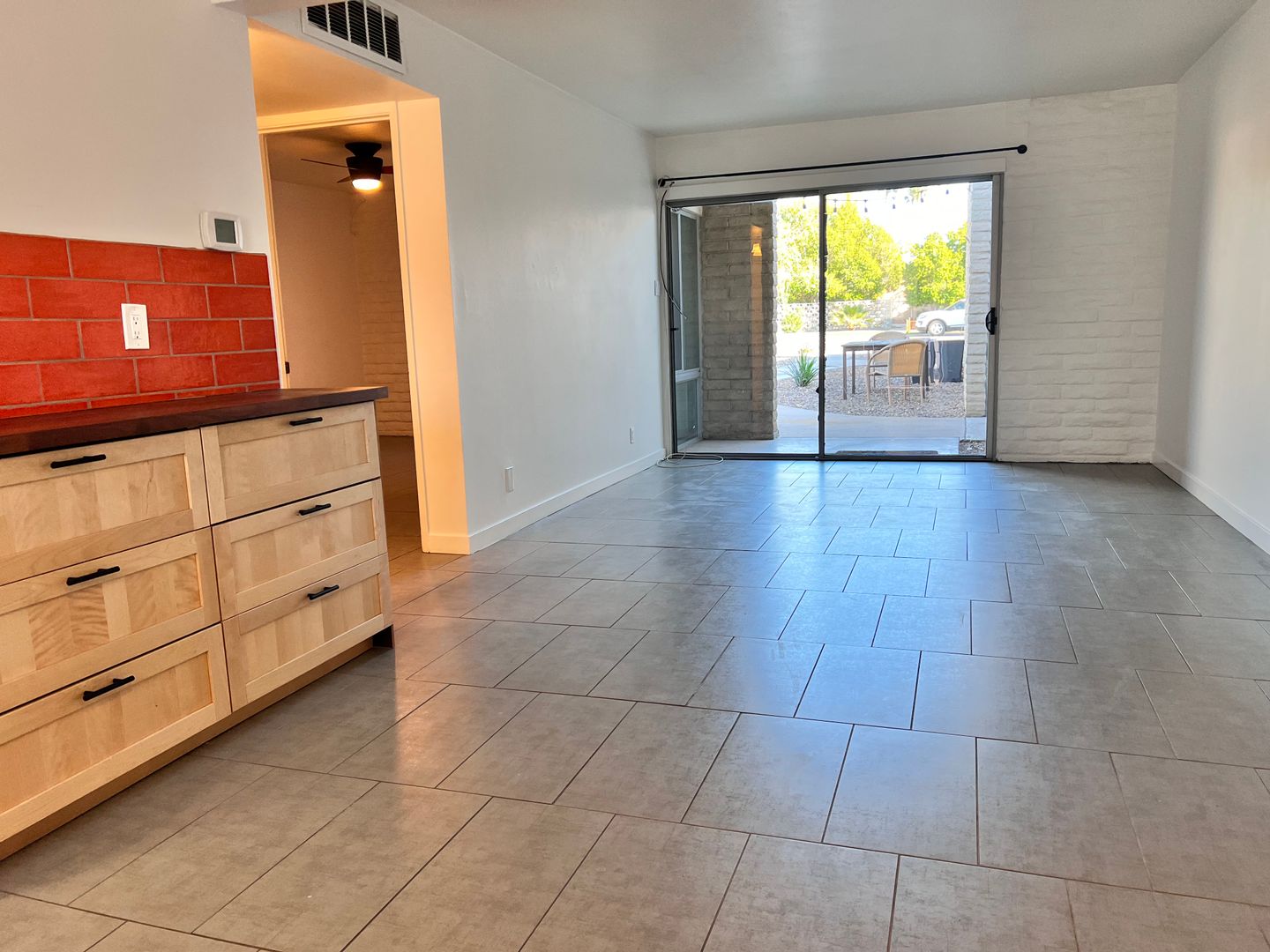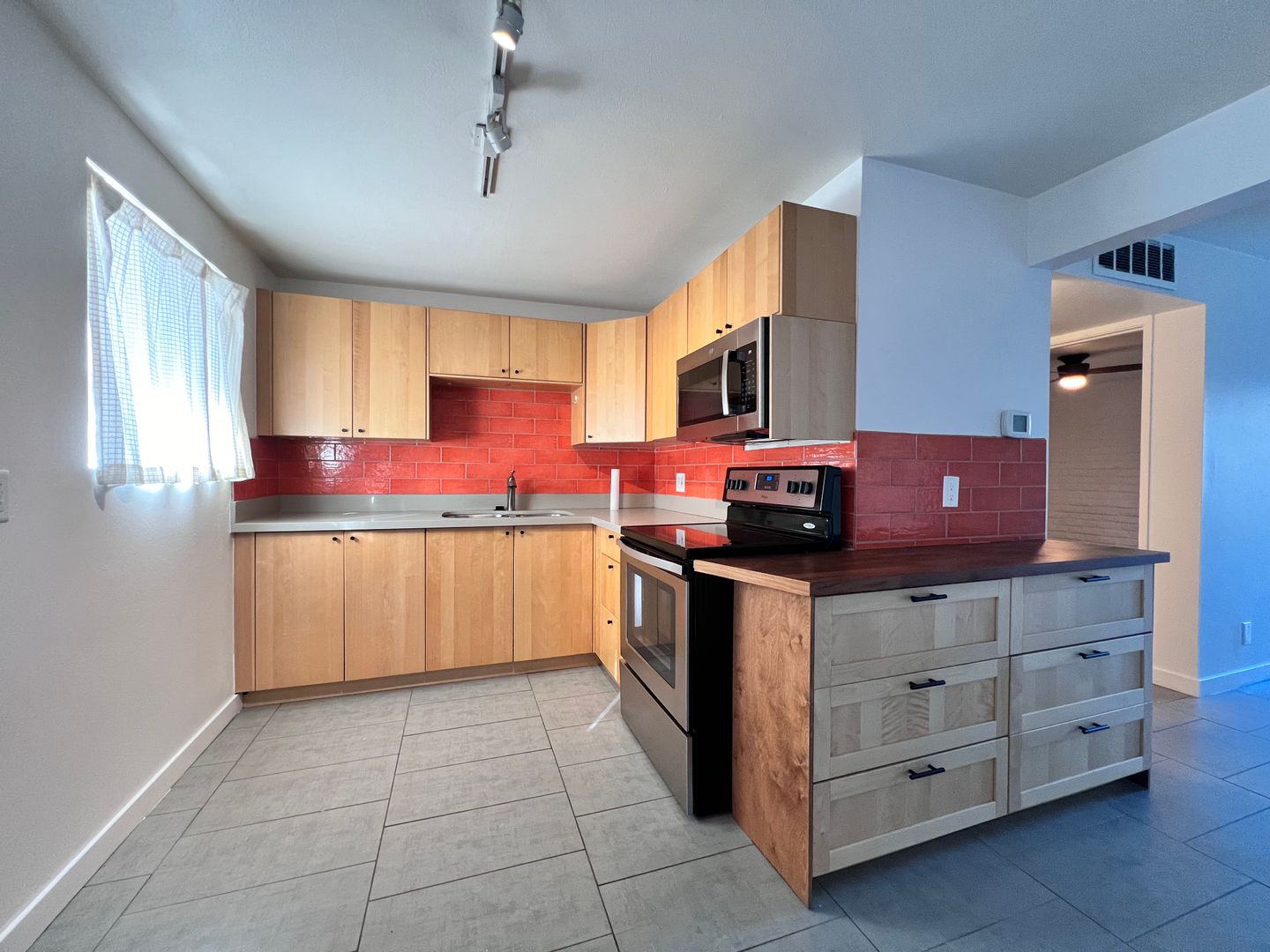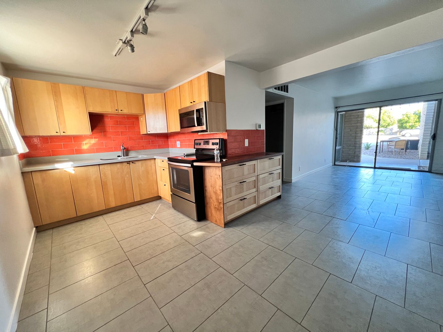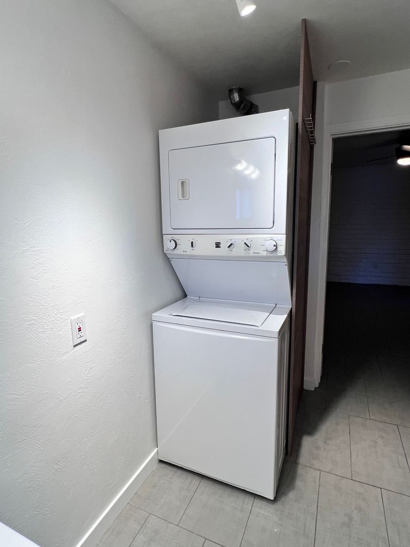 Welcome to this charming apartment located in the sought-after Arcadia-Biltmore area. Featuring one bedroom and one bathroom. Large slider patio door allows for lots of natural light, opens to a small patio space with a nice view of the grounds. Large neutral tile flooring throughout the apartment. The kitchen has subway tile backsplash, solid surface counters complemented by a stainless-steel French door refrigerator, a smooth top stove, built in microwave, and additional cabinets topped with a butcher-block counter. This apartment also offers a stack washer/dryer conveniently located within the apartment. There's one covered parking space plus ample street parking available and a locking storage closet. With its prime location this apartment is the perfect place to call home in the heart of the Arcadia-Biltmore area. Rent includes water/trash/sewer.